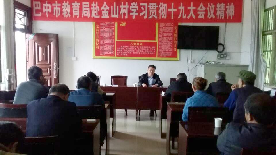 11月16日,巴中市教育局赴帮扶村金山村宣传宣讲党的十九大会议精神,向金山村全体党员干部和群众代表系统全面阐述了习近平新时代中国特色社会主义思想的历史地位和科学内涵和重要会议精神。